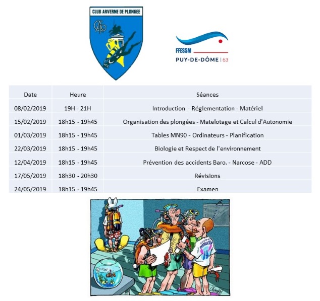 Merci de prévoir: combinaison, masque, palmes, tuba et 2 kg de plomb de plus qu'en mer.